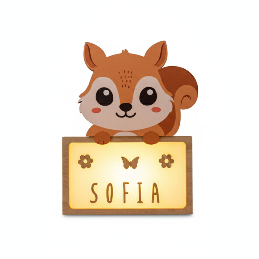 Night lights in the shape of a bear. Its belly lights up when you turn it on. Like all our products, you can personalize the lamp with the name you want since it comes with the letter and symbol kit.