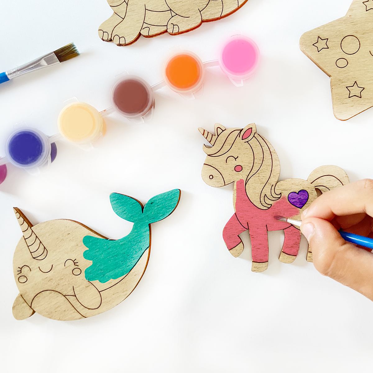 Con este kit podrán colorear 5 animales fantásticos que seguro que les encantan: un narval, un unicornio, un dragón, una sirena y una estrella.